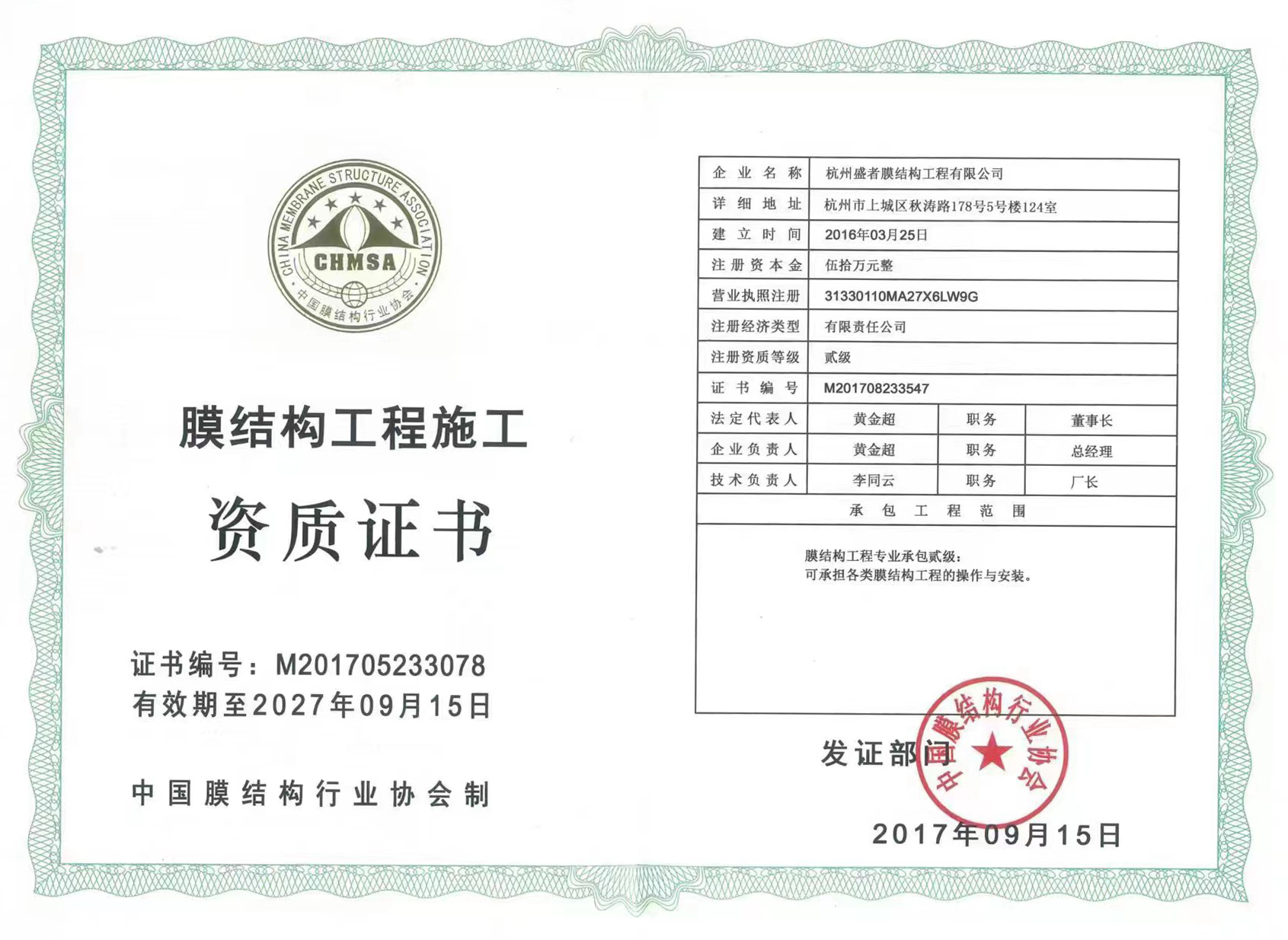 杭州盛者膜結(jié)構(gòu)工程有限公司是設(shè)計、制造、安裝于一體的專業(yè)膜結(jié)構(gòu)公司,是中國較早系統(tǒng)引進(jìn)國外較好膜結(jié)構(gòu)技術(shù)的專業(yè)公司;主要從事張拉膜結(jié)構(gòu)的設(shè)計、制作和安裝。公司設(shè)計使用國際較好的膜結(jié)構(gòu)建筑膜,荷載分析,裁剪及結(jié)構(gòu)設(shè)計軟件,采用進(jìn)口膜材并全套引用國外較好的膜材裁剪及焊接生產(chǎn)線,是國內(nèi)較早具有PTFE和PVDF等膜結(jié)構(gòu)工程設(shè)計、制作和安裝能力的膜結(jié)構(gòu)公司。